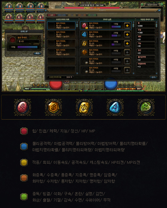색상으로 구분되는 이 아이템을 장착하는 방식에 따라 캐릭터의 능력치 변화량이 달리지며 루바트 포인트를 분배하는 방식에 따라서도 캐릭터의 성향이 변화된다.
