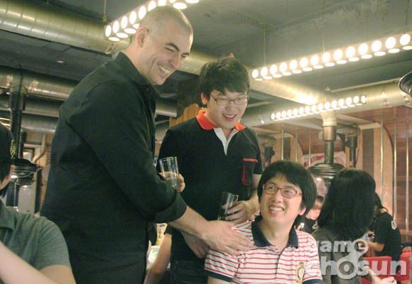 ▲ 곰TV 관계자들과 스타2 팬이 함께한 자리에 참석한 선댄스CEO(좌)와