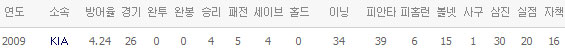 09년도에는 4.24의 방어율과 4세이브라는 역대 최악의 성적을 기록했지만, 아이러니하게도 이 시즌에서 기아 타이거즈는 우승을 차지했다. 이후 미국 LA 조브클리닉센터에서 오른쪽 팔꿈치 내측 인대 재건수술, 팔꿈치 뒤편 뼛조각 제거수술을 받았다.