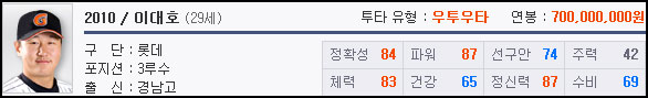 ▼ 1루수 : 이대호(Lv.10, 594)