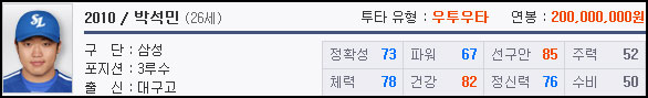 올 시즌 3할이 넘는 타율로 좋은 활약을 보이고 있는 박석민은 게임 내에서도 좋은 능력치를 가지고 있다.