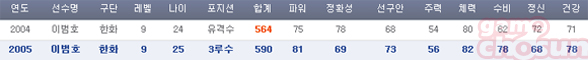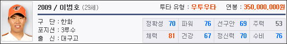 한화 유저에게 이범호는 필수 영입대상이지만, 04년 유격수와 05년 3루수 이범호를 선택하면서 고민이 된다. 각 포지션 부문 팀 내 최고이기에 둘 중 하나를 유저는 과감하게 포기해야 한다.