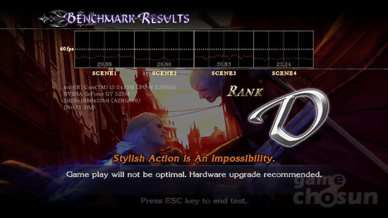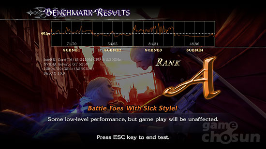 최고사양 옵션에 1920*1080 해상도로 구동한 결과는 평균 21프레임으로 랭크 A를 기록했다. 나름 재미용 벤치마크이긴 하지만 이정도면 캐릭터 애니메이션에서 끊김이 느껴질 정도라 어색함이 없지 않다.