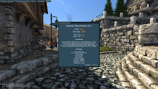 Heaven벤치마크는 DirectX11의 신기술인 테셀레이션을 시험해볼 수 있는 벤치마크로, 러시아의 실시간 3D엔진 개발사 UniGiNE에서 개발한 벤치마크 프로그램이다.