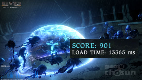 고사양 옵션에서는 스코어 901. 이정도면 실제로 파이널판타지14를 즐기기에는 무리다. 다수의 게이머들이 테스트 해본 결과 3000점은 기록해야 실제 게임에서 그래픽을 완연히 즐기면서 원활한 진행이 가능한 것으로 알려져 있다.
