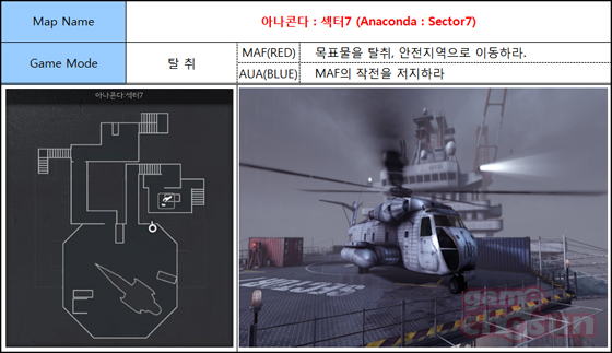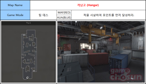 먼저 격납고 맵은 북서태평양 공해상에 배치된 미국의 항공모함을 호위하는 대잠초계함 내부 격납고에서 전투가 펼쳐지는 맵으로 작고 단순한 맵 구조상 상대팀과 화끈한 화력 대결이 가능해 치열한 전투 현장을 간접 체험할 수 있다.
