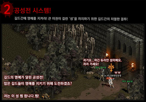 A. 기다리시는 분들께 정말 죄송하게 생각하고 있습니다. MORPG방식의 게임에서 아직까지 공성전이라는 콘텐츠가 제대로 구현하기가 매우 힘들어 굉장한 공을 들이고 있습니다.액션게임이다 보니 10명만 모여서 스킬을 난사해도 화면이 보이지 않을 지경이라 어려운 상황입니다. 하지만 길드를 위한 콘텐츠인데다 코어유저들에게 중요한 부분이기 때문에 매우 신경써서 개발중입니다.