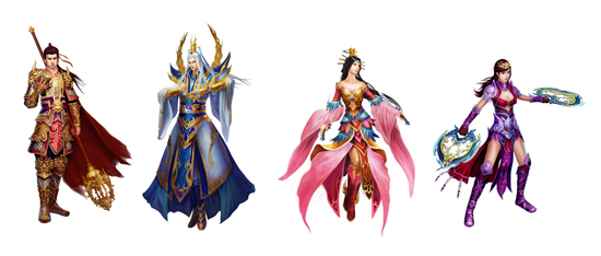 ▲ 왼쪽부터 소림파, 전진교, 도화도, 고묘파의 캐릭터 모습