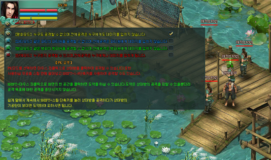 게임 내 평화모드, 파티모드, 방파모드, 전체모드 등 총 4가지 PK모드가 존재해 유저들의 취향에 맞게 즐길 수 있다. 종남산 아래와 양양성을 제외한 모든 곳에서 PK가 가능하고 PK시에는 SHIFT 버튼을 누르고 공격대상을 클릭하면 공격이 가능하다.