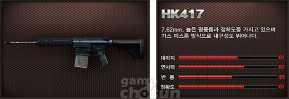 그래서 대표 주 무기인 AK103, M4A1, HK417, MP5K, P90 각 무기의 사진을 보고 능력치를 파악한 후 영상을 통해 일반사격/ 조준사격 시의 탄흔 영상을 본 후 어떤 무기가 좋은지 확인해 보려 한다.