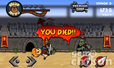 기본적인 게임의 구성은 스테이지를 클리어하면서 모이는 골드를 이용해 주인공의 무기와 방어구 등을 업그레이드시키며, 콜로세움의 승자가 되는 것을 목표로 진행된다.