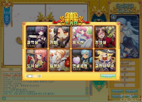 ‘소드걸스’의 가장 큰 차별 점은 LAB입니다. LAB은 카드의 조합 및 강화, 재료 생성 등 본인이 보유한 카드를 강력하게 변화시키는 일종의 카드 조합시스템입니다.