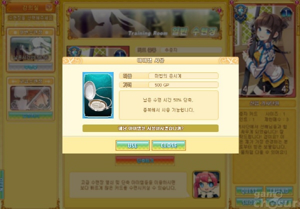 캐시 아이템으로 수련에 드는 시간을 단축할 수 있습니다. 중복 사용 가능합니다.