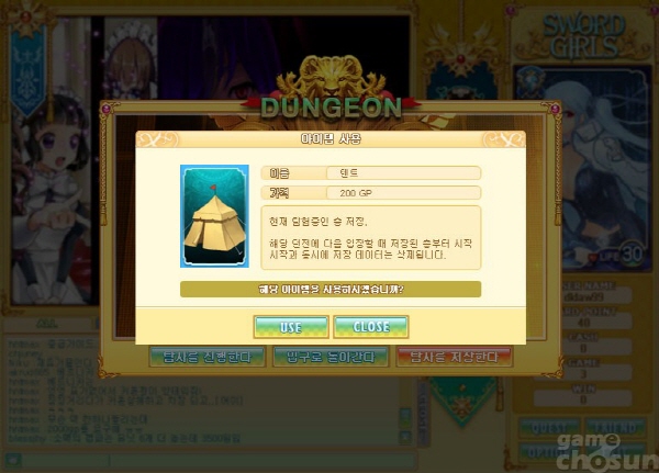 단, 던전의 진행 상황을 저장하려면 캐시(GP)를 내야 합니다. 캐시(GP)가 없으면 다음 도전 역시 1층부터 시작하게 됩니다.