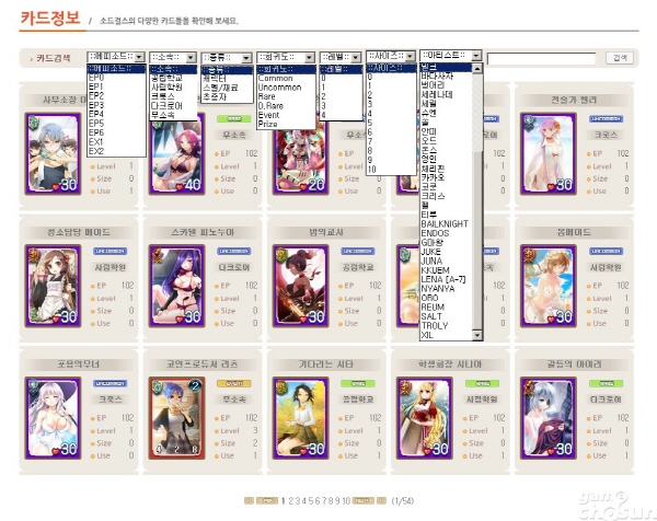 미소녀들로만 이뤄져 더욱 흥미 진지한 카드정보를 살펴보겠습니다. ‘소드걸스’는 회원 가입과 동시에 선택한 캐릭터에 맞는 덱(Deck)을 기본적으로 제공, 즉시 게임을 즐길 수 있습니다. 카드의 종류도 많아 현재 800장에 달하는 방대한 양을 자랑합니다. 회사 측에서 앞으로도 계속 카드를 발매할 계획이라고 하니 더욱 기대가 됩니다.