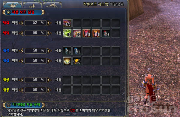 ↑ 물약이 떨어져도 캐쉬만 충전되 있으면 세팅대로 물약을 사서 사용한다.