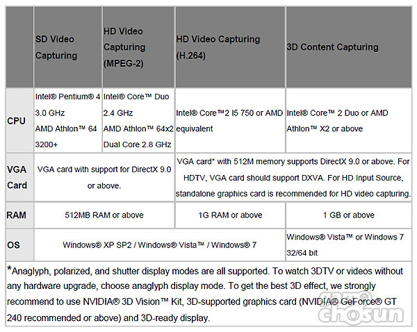 <캡쳐보드에서 하드웨어적으로 영상을 처리해 녹화하는데 높은 PC사양을 요구하진 않는다.>