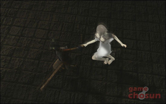 하지만 이코는 게임 초반에 만난 요르다라는 소녀와 함께 성을 탈출해야 한다는 점이 특징입니다. 뛰고, 구르고, 달려야 하는 액션 어드벤처에서 '훅~' 불면 날아갈 것처럼 보이는 절대 가련 소녀와 함께 한다는 겁니다. 요르다는 특정 문을 열 수 있다는 것을 제외하면 신체적인 능력은 제로에 가깝습니다. 멀리 뛰지도 못하고, 무거운 것을 들 수도 없으며 이코가 없을 때 마물을 만나면 반항조차 못하고 납치되어 버리는 순정 소녀이지요.