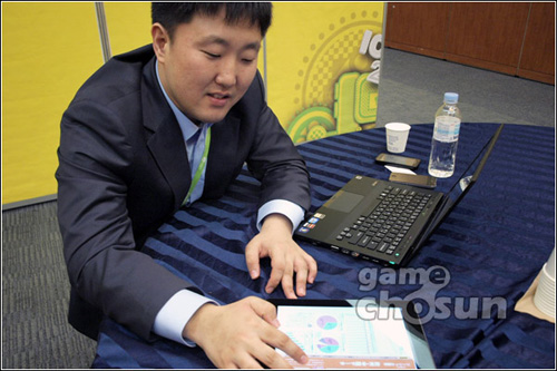 김 대표 : 다음과 네이버 두 곳에 대해 말씀 드리자면, 다음은 실용적으로 접근하고 있습니다. 징가 같은 사례가 되기보다는 우리 정서에 맞는 소셜 게임 비즈니스를 진행하고 있죠. NHN 네이버는 한게임 재팬의 영향을 받았고, 스마트 디바이스 영역에 스마트 한게임을 런칭했다는 점을 볼 때 행보를 더 지켜볼 필요가 있습니다.