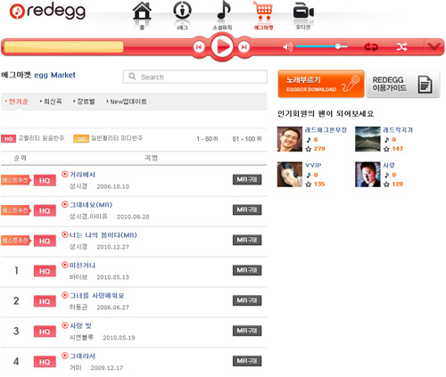 노래방이 대중화된 우리나라에서 이런 서비스의 수요는 높은 편이고 오디션 프로그램의 예선 지원용 UCC제작이 가능한 사실이 알려지며 입소문을 타고 있다. 실제로 '레드에그' 사이트에서는 서로의 노래를 칭찬하는 이용자들의 인사말이 오가고, 여러 포털 사이트에서도 '레드에그'를 소개하는 글들이 올라오고 있다.