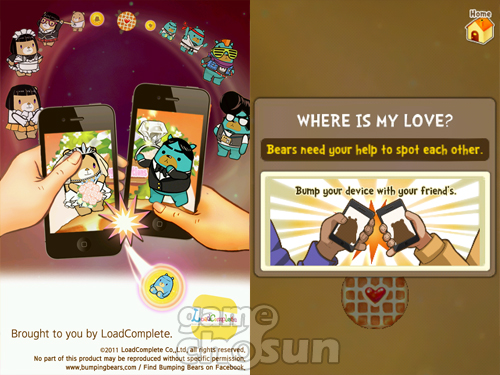 '범핑베어'에서는 위치 기반 서비스말고도 특별한 플레이를 즐길 수 있습니다. 바로 '범프' 기능인데요, '범핑베어'를 실행 중인 아이폰끼리 부딪혀(Bump) 곰들을 데이트시키고 결혼하게 만들어 새로운 아기 곰을 태어나게 할 수 있습니다. 이 때는 결혼 엔딩으로 이어지고 새 아기 곰을 맞이하게 됩니다.
