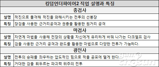 ▲킹덤언더파이어2의 캐릭터(왼쪽부터 총검사, 마검사, 광전사)