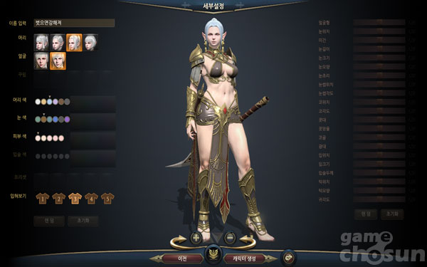 직업을 선택하면 자신만의 캐릭터를 만들 수 있는 캐릭터 커스터마이징 화면으로 이동하게 된다. 여기서는 캐릭터명, 머리 모양, 얼굴, 머리색, 피부색 등 다양한 설정으로 자신만의 캐릭터를 만들 수 있으며, 이번 테스트에서는 각각의 세부 조절 기능이 빠져 있다.