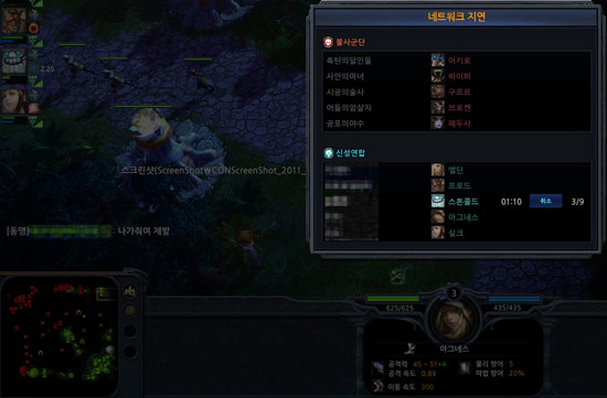 모두가 영웅을 선택하고 나니 5초 뒤 게임이 시작됐다. 각 진영 5:5로 총 10명이 한 방에서 대결을 펼치는 구도였다. 우리 진영인 신성연합은 5시, 상대인 불사군단은 11시로 서로 마주보고 있었다. 상대는 컴퓨터 플레이어인데 이리저리 도망다니거나 협공을 펼치는 듯 사람 같은 플레이를 보여줘 컴퓨터인지 알아채기까지 오랜 시간이 걸렸다.