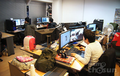 <건즈TSD 개발실. 최근 탄력이 붙어 야근이 잦다고>Q. 전체적인 완성도는 어느 정도까지 진척됐나?