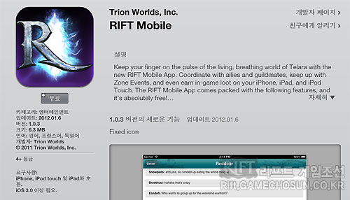 '리프트' 개발사 트라이온월드에서 자신의 캐릭터에 등록된 친구리스트 및 길드를 관리하고 커뮤니케이션할 수 있는 모바일 애플리케이션(이하 앱) '리프트 모바일'을 내놨다.