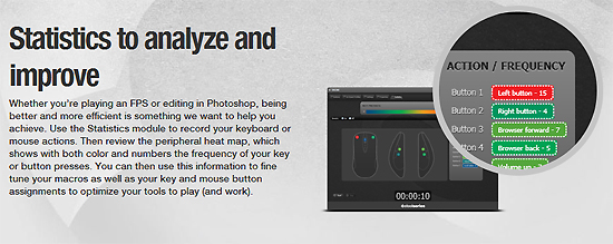 가장 중요한 것이 빠졌군요. 스틸시리즈의 마우스가 중요한 이유는 게이머를 위해 디자인된 스틸엔진 소프트웨어라고 볼 수 있습니다.스틸시리즈의 모든 게이밍기기들은 게이머를 위해 다양한 기능을 제공하며 이를 위한 지원으로 스틸시리즈 엔진 소프트웨어를 통해 제공됩니다. 엔진 하나로 수많은 스틸시리즈의 기기들을 관리할 수 있으며, 게이밍 키의 매크로 편집은 물론 프로파일 관리, 게임을 플레이하며 얼마나 어떤 키를 사용했는지 분석해 전략을 짤 수 있도록 도와주기도 하죠.