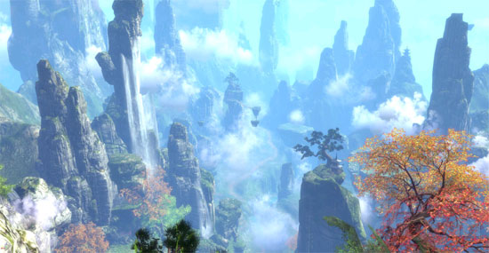 무림 고수들이 뛰어내리고 무술 경험을 하는 분위기와 캐릭터를 컨트롤하면서 호쾌하게 뛰어내릴 수 있는 장소를 만들기 위해 설악산의 뾰족한 윗부분과 중국 장가계를 합쳤다.