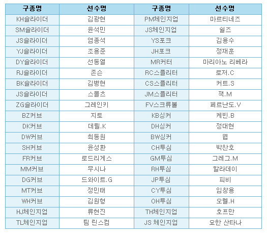 이 외에도 구질의 궤적과 공 회전방향이 변경되는 구종은 너클커브, 포크, 슬로우커브, 슬라이더, H-투심, 팜볼, SF, 체인지업 등이다. 여기에 신규 구질도 추가된다. 신규 구질은 슬러브, 파워커브, 12-6 커브로 총 3종.