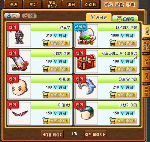 길드 상점에서는 HP 최대치를 증가시키는 목걸이와 '극' 계열 무기를 포함해 다양한 레벨의 공훈 복주머니를 구입 가능하다.
