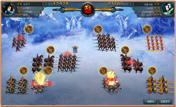 진형 시스템에 따라 상극 효과가 발생해 아이템 차이를 능가하기도 하며, 전투에서 승패를 좌우하기도 한다. 새로운 진법을 익히려면 '부대기술'에서 '무혼'으로 배우면 된다.