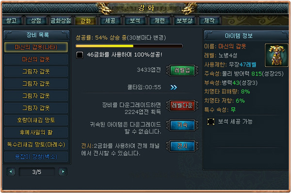 ▲ 시간에 따라 강화 확률이 변화