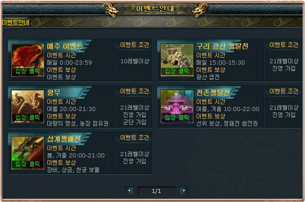 '지나인'은 다양한 이벤트들이 항시 진행되는 게임이다. 이벤트를 통해 게임에 필요한 '엽전'과 각종 보너스를 제공한다.