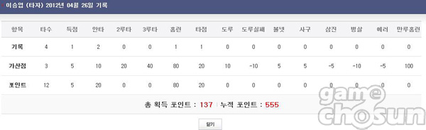 ▲ 게임에 반영되는 선수 실적 기록