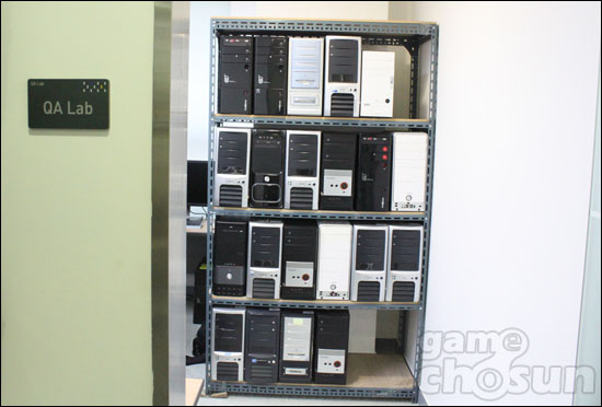 ↑ 홍석근 리드 프로그래머가 블레이드앤소울의 최적화에 대해 설명하고 있다. 홍석근 리드프로그래머는 개발자가 게임을 최적화하기 위해서는 몇 가지 분야가 있다고 전했다. 이는 그래픽 최적화, 서버 최적화, 메모리 최적화, 용량 최적화 등이 있으며 모든 분야에서 보다 많은 유저들이 플레이할 수 있도록 진행하는 것이 주목적이라고 말했다. 특히 유저들의 관심이 가장 집중되어 있는 그래픽 최적화 부분은 PC 사양에 맞춰서 세부적인 세팅이 가능하게 조절했으며 이런 세팅에 익숙지 않은 유저들을 위해 1단계~5단계로 간단히 퀄리티를 조정할 수도 있다고 말했다. 최종적으로 윈도우 XP, 2기가 메모리, 코어2, 8800GT 수준이면 4단계 정도의 그래픽 퀄리티로 무리 없이 돌릴 수 있다고 전했다. ↑ 실제로는 최소사양보다 낮은 PC로도 구동할 수 있다. 아래는 브리핑 자리에서 홍석근 리드 프로그래머에게 질문한 내용의 답변을 정리한 것이다. Q. 최적화를 이끌기 위해서는 윈도우7과 64bit에서 플레이해야만 하나? A: 물론 64bit가 32bit보다 메모리를 자유롭게 쓰기 때문에 성능을 더 끌어올려 준다. 하지만 그 수준은 미미한 수준이다. 윈도우 XP에 2기가 메모리에 맞춰 최적화를 진행했기 때문에 게임 퀄리티에 차이는 거의 발생하지 않는다. Q. 에피타이징 테스트에서 대기시간에도 그래픽 카드가 풀 로드에 걸리던데? A: 프레임 레이트 옵션에 제한 기능이 있는데 이를 끄면 풀로 돌게 된다. 프레임 레이트 제한을 켜면 괜찮을 것이다. 실제로 제한을 없애면 60프레임을 넘어갈 수도 있지만, 그 이상은 게임을 플레이하는데 큰 의미가 없다. Q. 스크린샷을 찍을 때 멈추는 시간이 긴 편이다. 개선점이 있는가? A: 사진첩 기능이 들어가면서 저장 시간이 길어진 것은 사실이다. 새로운 기능을 넣다 보면 이런 일이 잦은 편인데 로컬 전에는 최적화해서 내보낼 것이다. Q. 그래픽 단계에 따라 시야 차이가 있는데 PVP에 영향을 받지 않나? A: 시야에 차이는 있지만, 최소사양인 1등급으로 했다고 극단적으로 시야가 줄어드는 것은 아니다. 상대를 인지하고 자신을 보호하기 위한 충분한 시야는 확보했기 때문에 크게 염려하지 않아도 될 것 같다. Q. 클라이언트 용량이 의외로 작은 편이다. A: 용량 최적화도 초기부터 중요하게 생각했었다. 퀄리티 높고 콘텐츠가 많다고 무조건 용량을 늘리면 게임을 즐기는 큰 장벽 중 하나가 된다. 개발력만으로 부족한 부분은 아티스트들과 이견 조율을 통해 극복했다. Q. 화려하고 예쁘게 꾸미려는 아트팀과의 대립은 없었나? A: 정말로 많은 논의가 이루어졌다. 현재 같이 일하는 아티스트들은 최적화 능력이 굉장히 뛰어나다. 리소스와 텍스쳐 등 용량을 줄이기 위해 몇 가지 변경이나 삭제가 이루어지는 경우가 많은데 기존의 느낌을 거의 잃지 않거나 오히려 더 좋게 다듬어지는 경우도 있었다. 이는 아트팀이 다년간 축적한 노하우의 결과라고 생각한다. 홍석근 리드 프로그래머의 브리핑과 질의응답이 끝난 후 블앤소의 최적화가 어느 정도나 되어 있는지 QA실로 이동했다. 이곳에는 다양한 PC들이 사양 별로 나열돼 있었는데 블앤소가 어느 정도의 PC에서까지 돌아가는지 시연을 통해 확인할 수 있었다. ↑ 정확한 수준을 눈으로 확인하기 위해 QA실로 내려갔다. 시연실에는 10여 대의 PC가 나열되어 있었는데 각각의 PC는 300만원을 훌쩍 넘어가는 최고 사양의 PC부터 지금은 거의 사용되지 않는 구세대 PC까지 다양하게 준비되어 있었다. 사양에 따라 로딩 시간과 그래픽 수준의 차이가 있었지만, 기본적으로 모든 PC에서 블앤소 구동이 가능했다. 저 사양 PC의 경우도 로딩이 길고 그래픽 수준이 낮았을 뿐 실제 게임상의 랙은 없는 수준. 홈페이지에서 최소사양으로 된 PC에서는 3등급 정도의 그래픽으로 플레이할 수 있었는데 이는 블앤소의 그래픽 수준을 느끼기에는 충분한 정도의 퀄리티이다. ↑ 다양한 사양으로 구성된 PC들. 6년 전 저 사양부터 최신형 PC까지 다양하다. 상당히 인상적이었던 것은 2006년에 시판된 저 사양 PC로도 블앤소가 구동된다는 것. 물론 그에 따른 로딩과 그래픽 저하는 있었지만, 지금까지 이정도 사양의 PC를 쓰는 유저들이 드물다는 것을 감안하면 최적화가 어느정도까지 진행됐는지 알 수 있는 부분이다. ↑ 2006년 PC로도 구동된다는 점이 인상적이다. |
