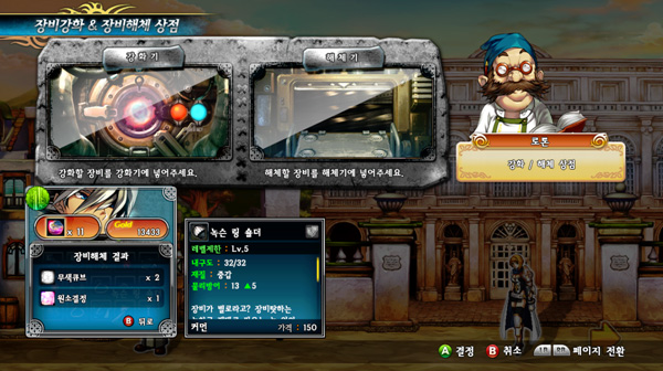 새로운 장비 제작은 던전에서 적과의 전투를 통해 획득하거나 장비 해체로 얻는 재료로 가능하다. 레시피는 게임 중 얻을 수 있다. 획득한 장비 아이템은 강화를 통해 더욱 강력한 캐릭터 육성을 가능케 한다.