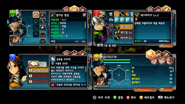 스킬 포인트는 제한적으로 주어진다. 스킬의 학습과 업그레이드 기능을 모두 고려해 전략적으로 배분하는 것이 필요하다. 스킬을 어떤 방식으로 배우는지에 따라 캐릭터의 특성도 많이 달라지기 때문에, 3종 캐릭터만으로도 다양한 캐릭터를 플레이하는 듯한 느낌을 준다.