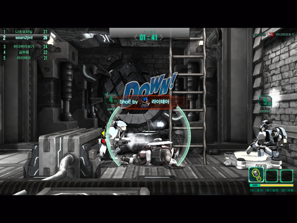 게임 규칙도 개인전과 팀전 두 가지로 간단하다. 팀전은 7분간 두 팀이 스코어를 경쟁하는 데스매치 모드이고, 개인전은 8명이 5분간 스코어 경쟁을 펼치는 모드다.