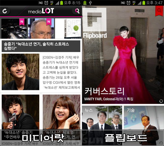 '미디어랏'은 플립보드의 매거진 느낌은 그대로 가져오면서 모바일 플랫폼에 맞는 편의성은 더 갖췄다.