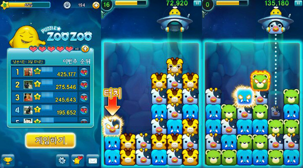 '퍼즐주주'는 제한시간 1분 안에 최대한 많은 동물 블록을 옮기는 것이 핵심으로, 한 번에 많은 블록을 없애기보다 여러 차례 연쇄 효과가 발동하도록 하는 것이 중요하기 때문에 순간적인 판단의 묘미가 있다. 또한 재빠른 손놀림이 중요하다 보니 정리정돈 같은 느낌도 든다.