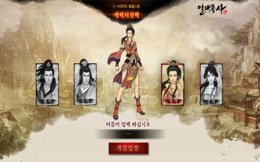 처음 일대종사에 접속하게 되면 협객과 검객 중 원하는 캐릭터를 선택하여 생성할 수 있다. 남,여 캐릭터는 외관에만 차이가 있을 뿐 기본 능력치는 같다.