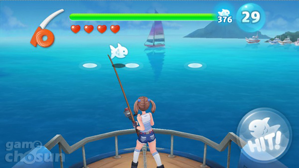 낚싯대를 던진 후 물고기가 미끼를 물면 클릭으로 물고기와의 사투에 돌입한다. 물고기가 좌우로 움직이는 동안 물고기가 이동하는 직선 아래 생기는 동그란 패턴에 맞춰 마치 리듬액션게임을 즐기듯 화면을 터치하면 물고기의 체력이 줄어들고 체력을 모두 소진시키면 물고기를 잡게 된다.