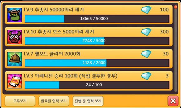 ▲ 업적을 완료해 ‘누구나’ 쉽게 캐럿을 획득할 수 있다.
