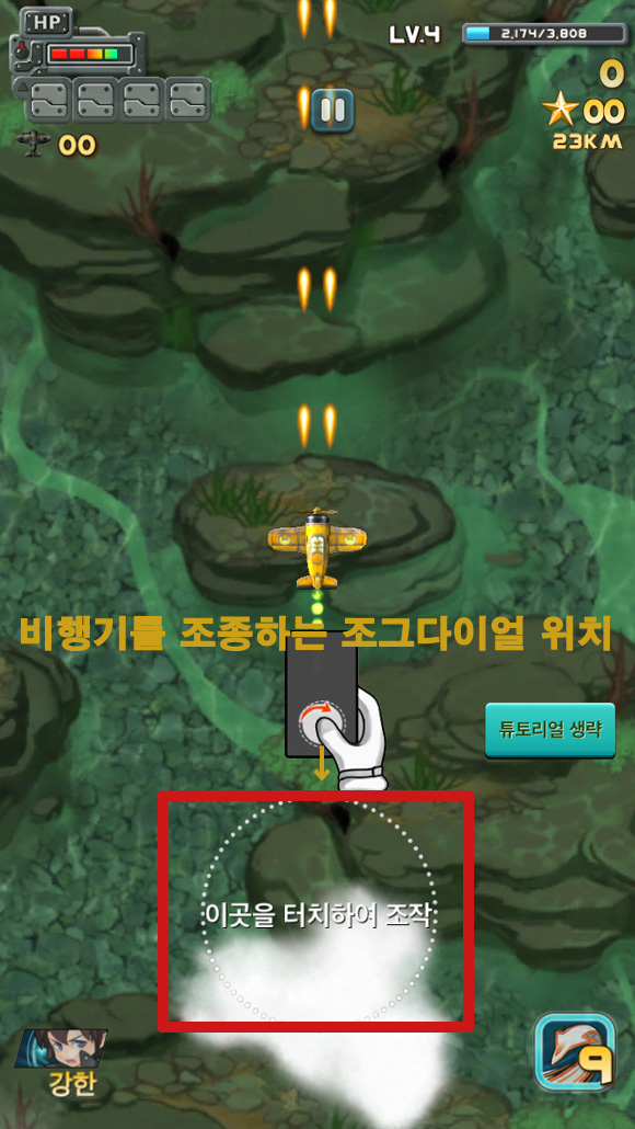 여기에 비행체를 움직이게끔 하는 ‘조그다이얼’의 위치는 화면 중앙 하단에 위치해 게임을 즐기는데 불편함을 제공한다. 게이머의 시야는 손가락을 뗄 수 없는 상황에서 게임을 즐기는데 방해하는 요소로 작용하기 때문이다.