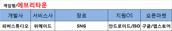 소셜네트워크게임(SNG) 개발사 피버스튜디오의 신작이자, 한국 애플 앱스토어 무료 게임순위 1위를 기록한 바 있는 '에브리팜'의 후속작 '에브리타운'이 지난 3월4일 구글 플레이를 통해 공개됐다.