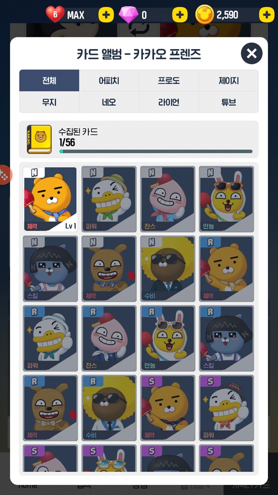 ‘올스타 스매시’ 캐릭터 카드 앨범_ 카카오프렌즈 그리고 미키와 친구들 = 카카오게임즈제공